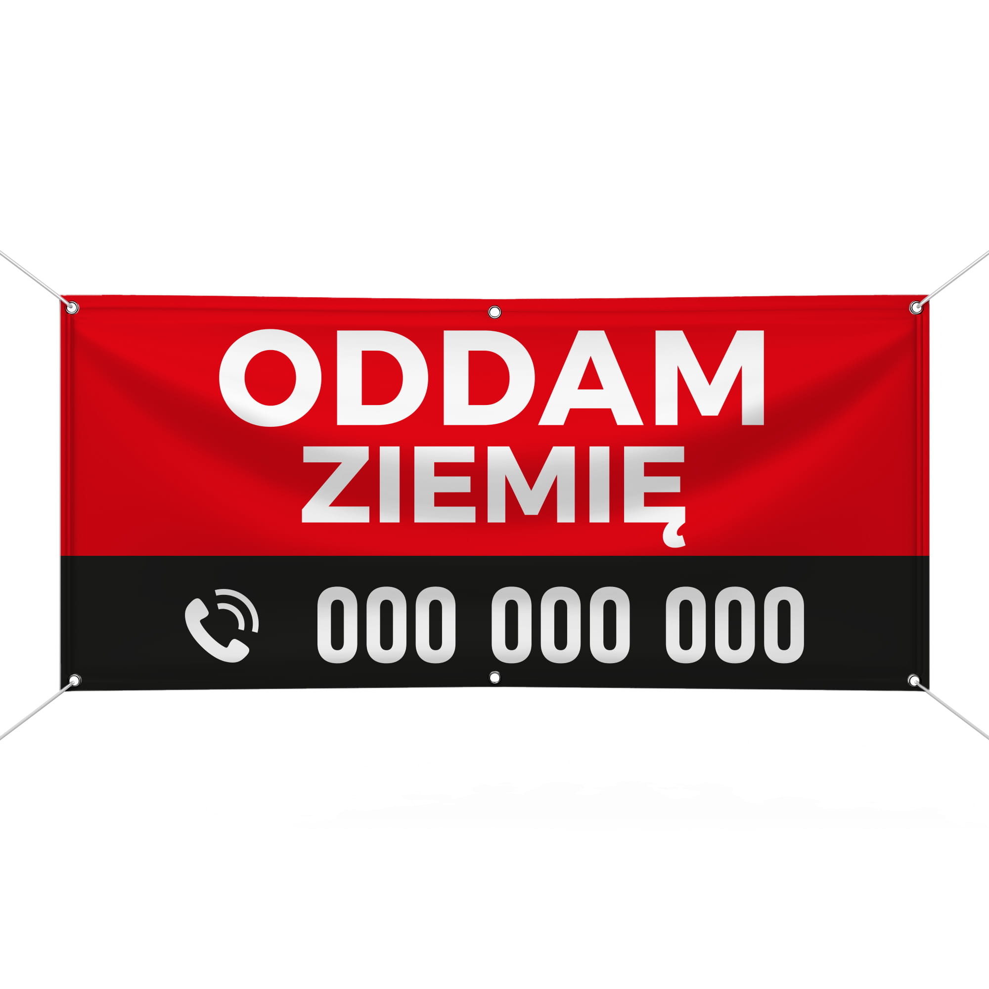 - Baner w wybranym formacie z kolorowym nadrukiem odpornym na warunki atmosferyczne