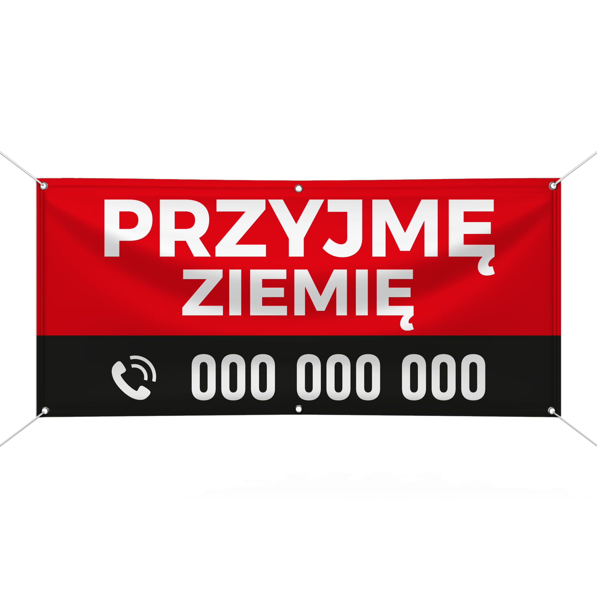 - Baner w wybranym formacie z kolorowym nadrukiem odpornym na warunki atmosferyczne